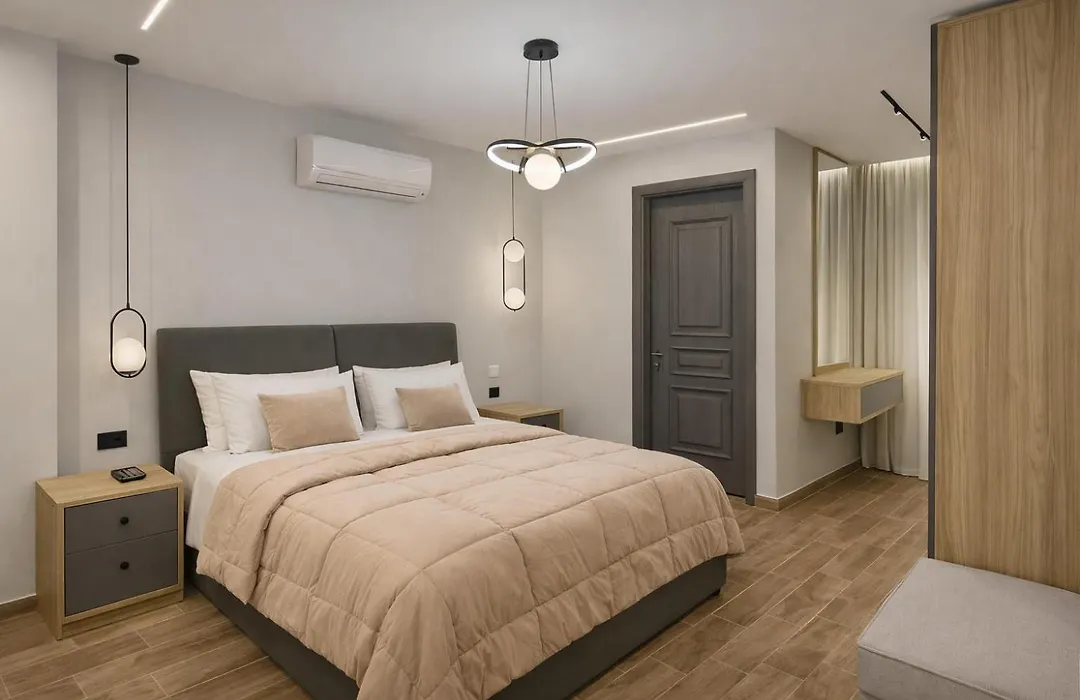 The apartment has a balcony, a living room, and a kitchen, and comforts such as an air conditioner. The accommodation offers guests the convenient feature of bath sheets in the bathroom. Additionally, you'll find a walk-in shower and a sink.